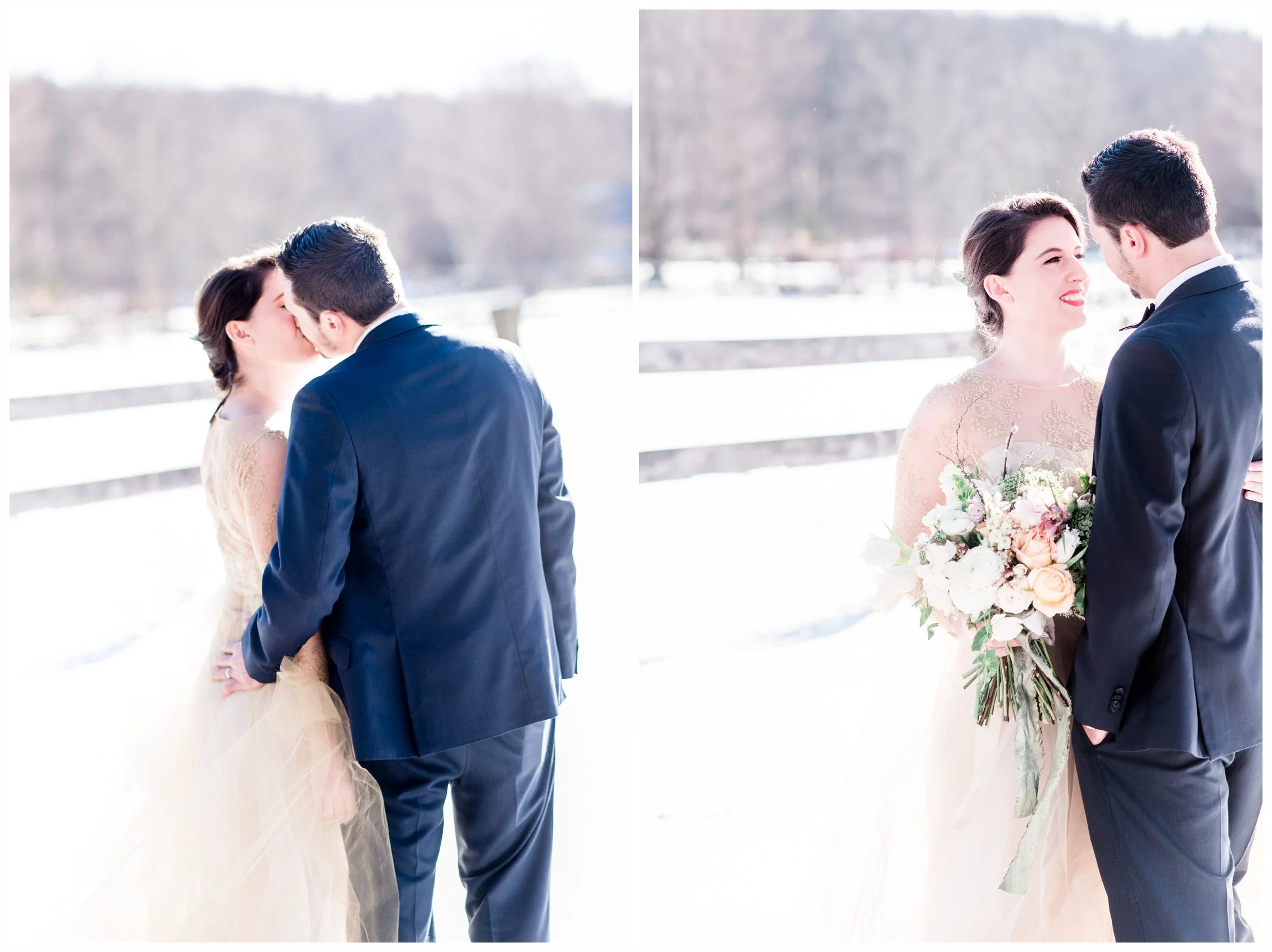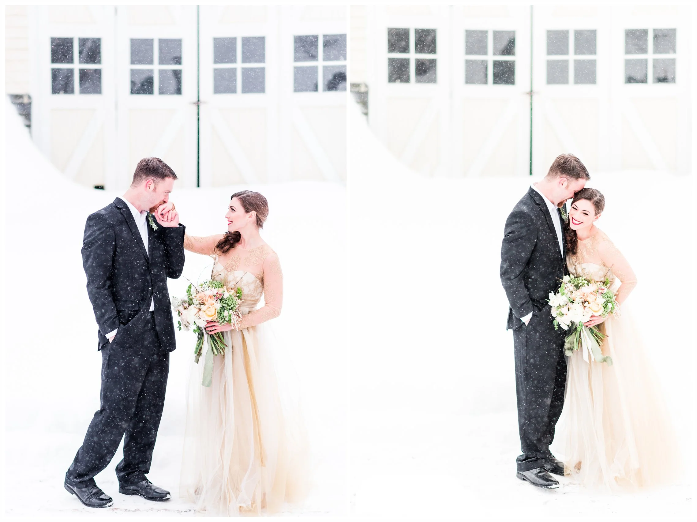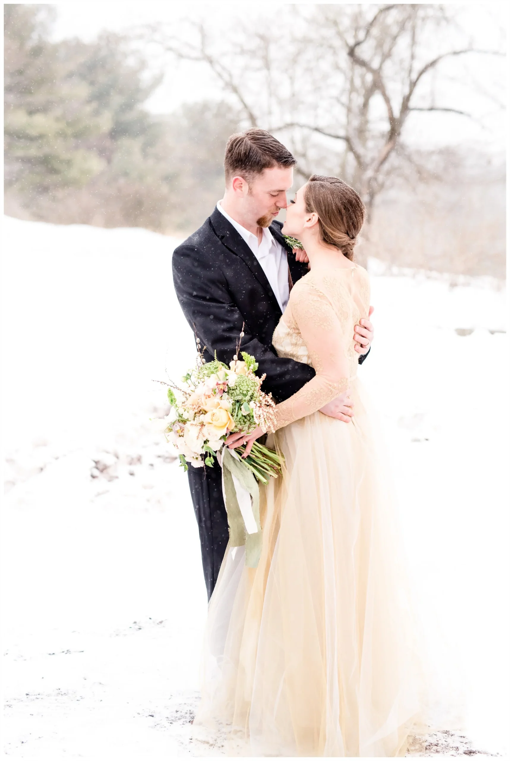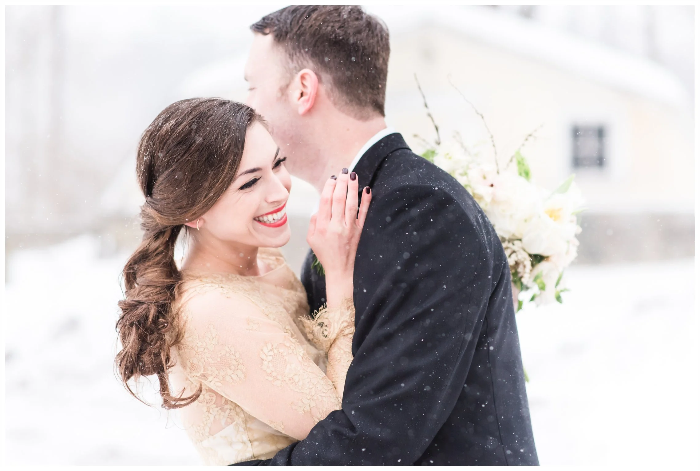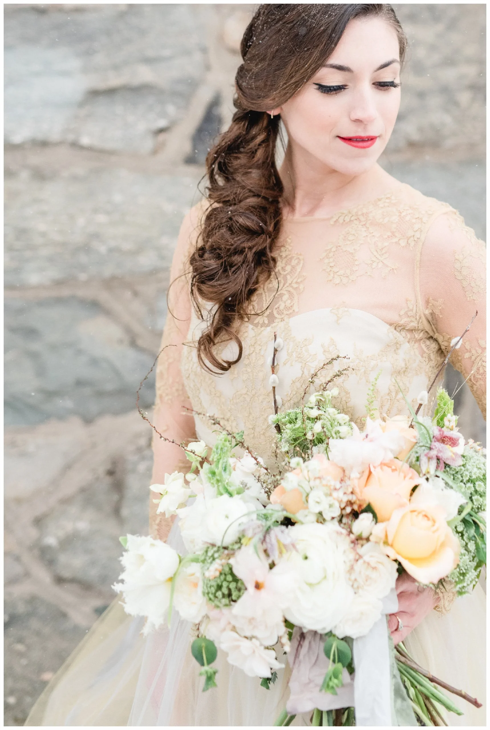 On Saturday we had heard that a snowstorm was coming to the Pocono mountains and of course their was a bit of concern about all of our attendees arriving safely. It all worked out because the snow did hold off until mid morning which made it possible for all to come! Little did we know that we would receive this beautiful light and magical snow that lasted the whole time we were shooting! It was beyond dreamy!!