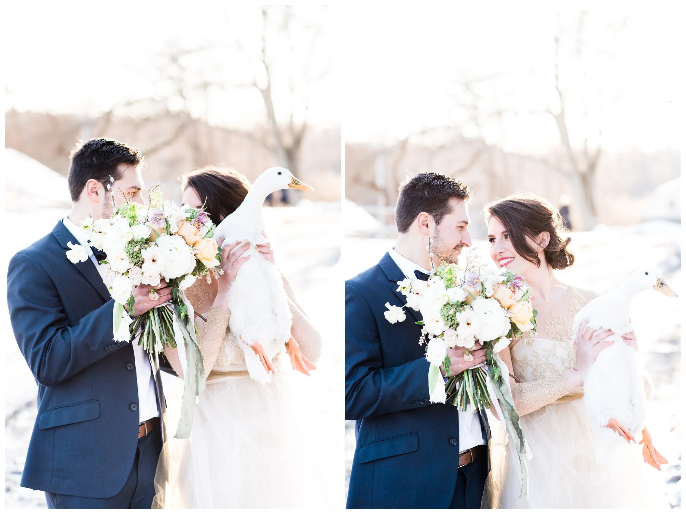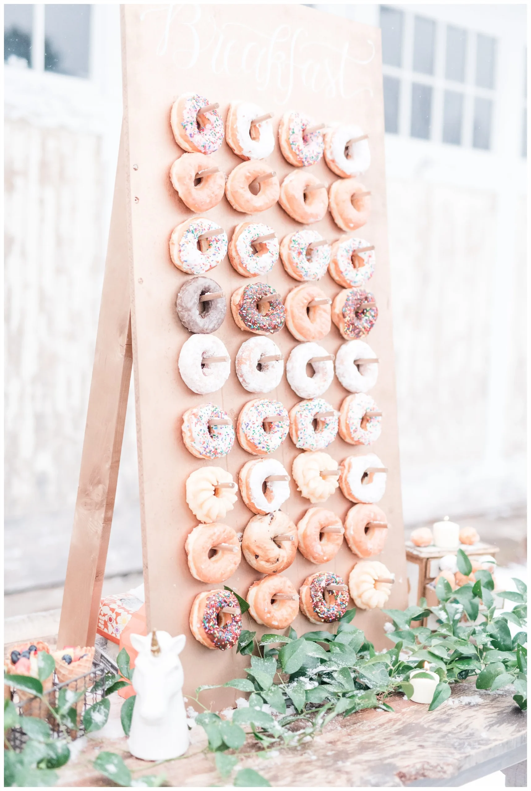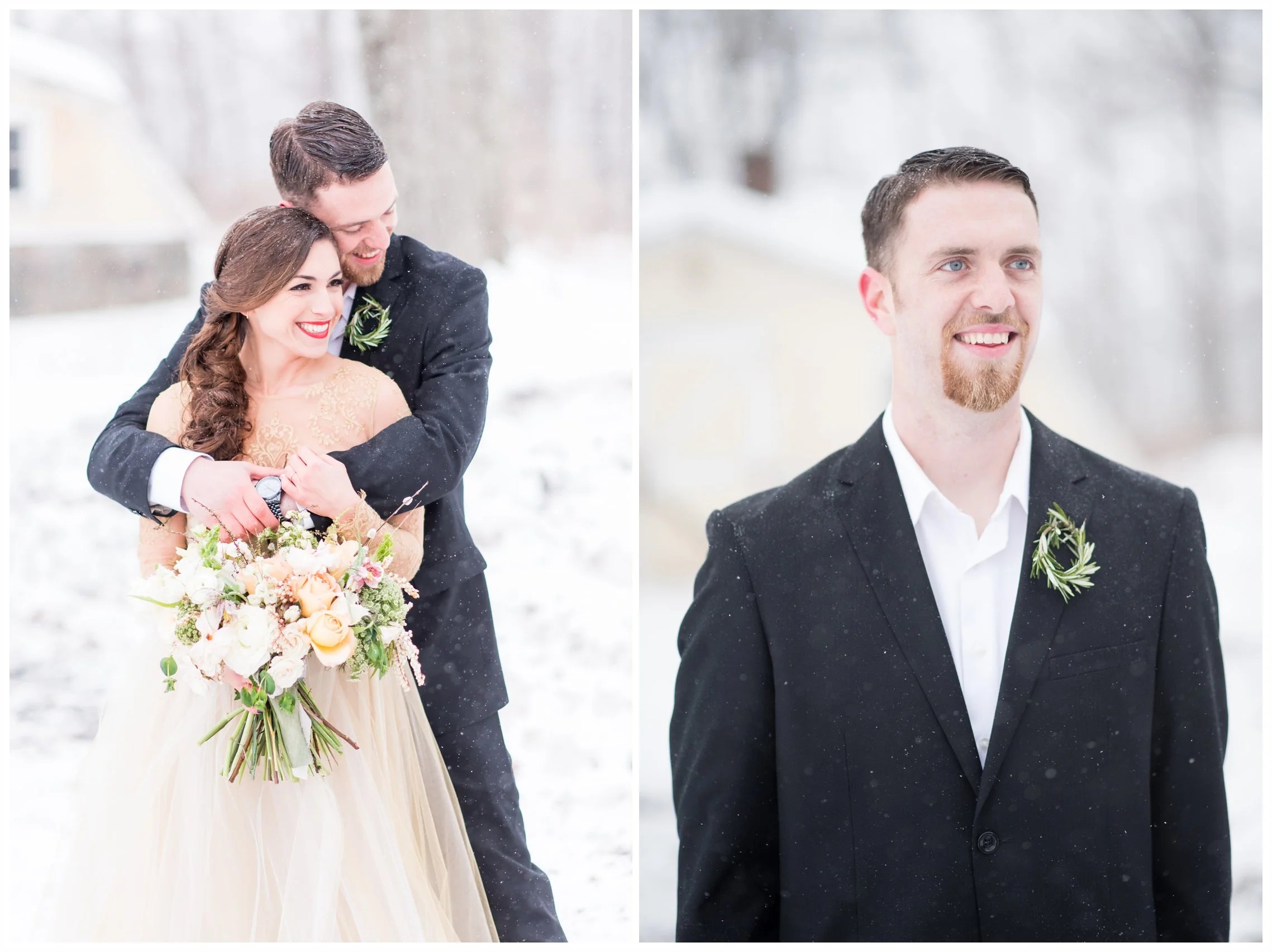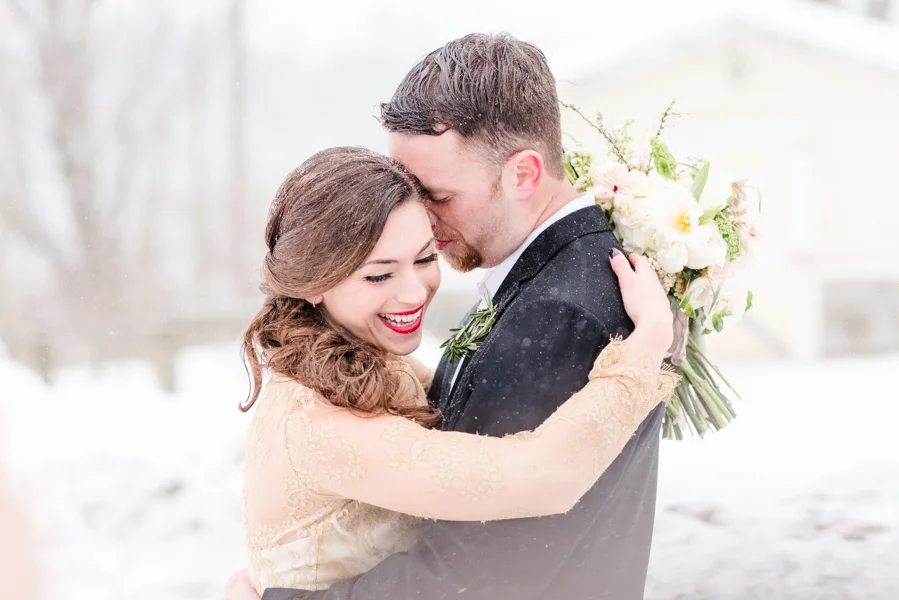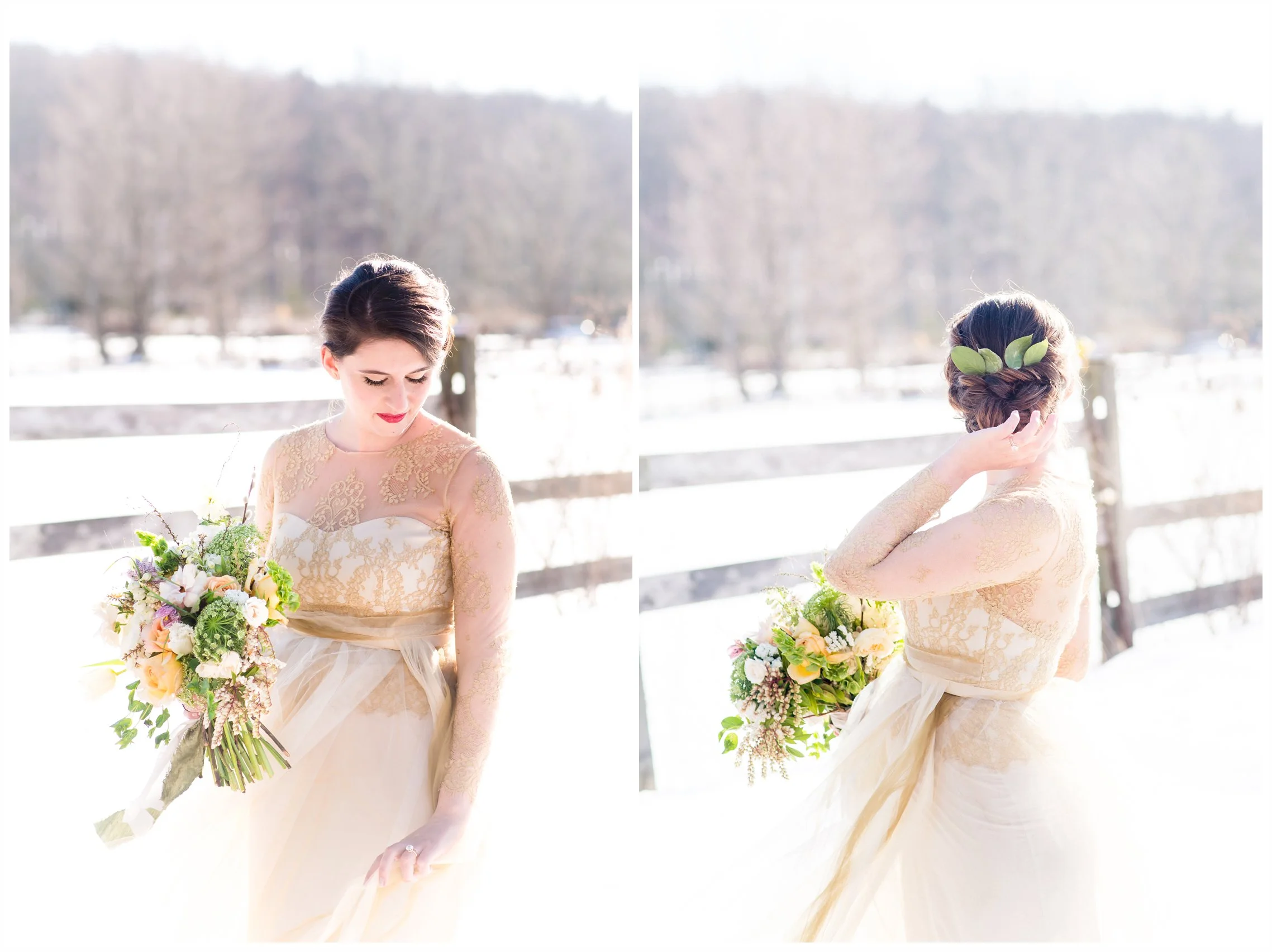 On Saturday we had heard that a snowstorm was coming to the Pocono mountains and of course their was a bit of concern about all of our attendees arriving safely. It all worked out because the snow did hold off until mid morning which made it possible for all to come! Little did we know that we would receive this beautiful light and magical snow that lasted the whole time we were shooting! It was beyond dreamy!!